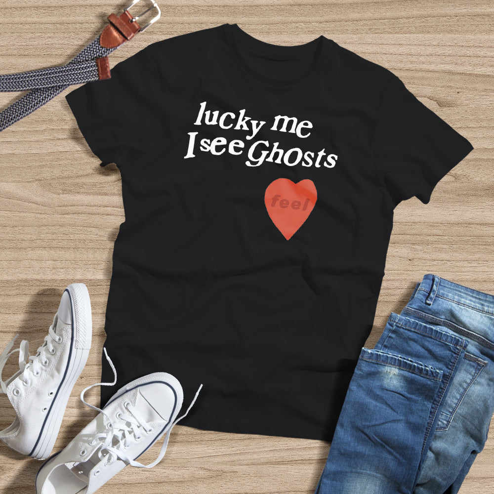 Whether you prefer the subtle charm of the Lucky Me I See Ghosts T-shirts or the warmth of the Lucky Me I See Ghosts Hoodies, the brand's commitment to quality is evident in every aspect. The careful design and premium materials make these clothing items a must-have for anyone looking to add a touch of haunting style to their outfit rotation.